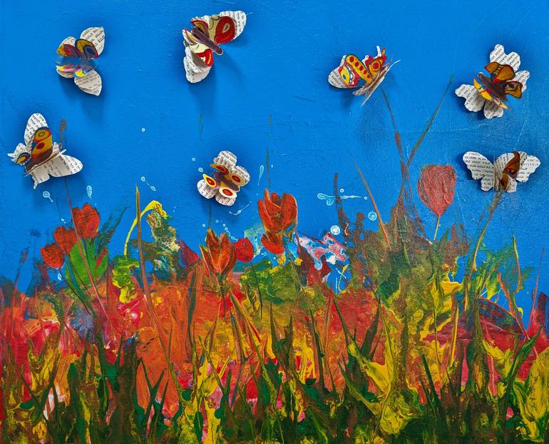 Original hand painted acrylic fine art one-of-a-kind Title "Brace yourself people, summer is coming!" Materials: acrylic paints, canvas, book pages Colorful painting would be a great addition to your painting collection. Signed on the front and back. Also comes with a certificate of authenticity...