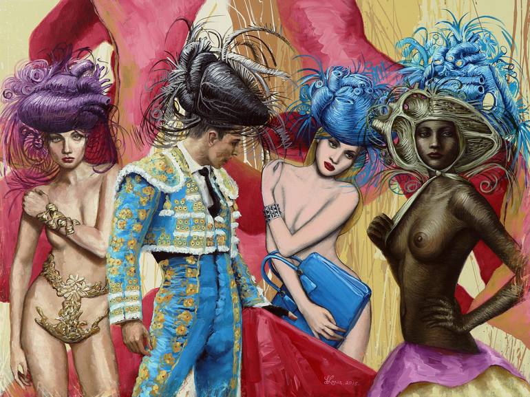 Figurative Fashion Models with Bullfighter. My painting aims to reflect the intimate relationship between the physical and spiritual aspects of the human being. My work gives special relevance and depth to the heart as birthplace of every single feeling and emotion. In my latest work I use a heart...