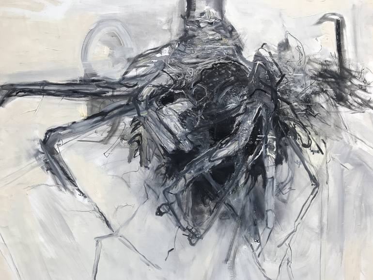 This mixed media painting on canvas is part of a series titled "It Didn't Take" which includes other versions of drawings and paintings of roots. These images are meant to convey ideas about systems of survival and support such as roots, bone, web, tentacles, extremities of the body and more. The ma...