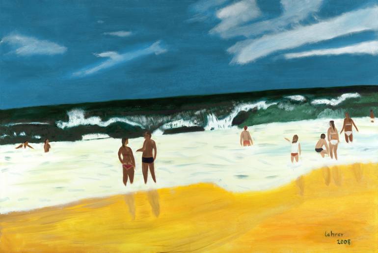 Heard of Copacobana? Heard of the girl from Ipanema? On the same stretch is a beach called Leblon. It is fabulous. The waves are strong and mighty, and the atmosphere is electric. This painting captures only a small portion of life on the beach. A few people standing with their feet in the water as...
