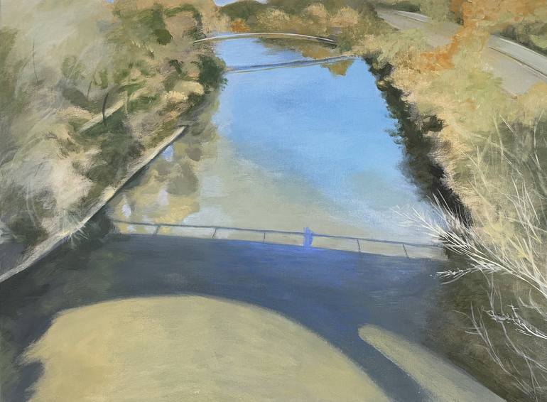 The Don river valley here in Toronto is close to where we live and when we walk across to the other side on the pedestrian bridge one can get different views of the river. On a particular autumn day this view inspired me to paint it. The colour of the shadow of the bridge on the water appealed to me...