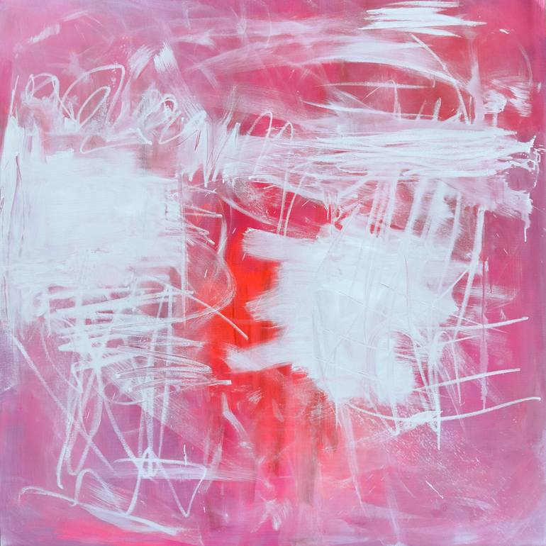 In this stunning large oil and acrylic painting on canvas, I used sweeping and impulsive brushstrokes as I poured my emotions, body and soul onto the canvas. I believe it captures a raw, turbulent energy. Shades of passionate red, pink and white clash and merge with soothing, softer tones, to expres...