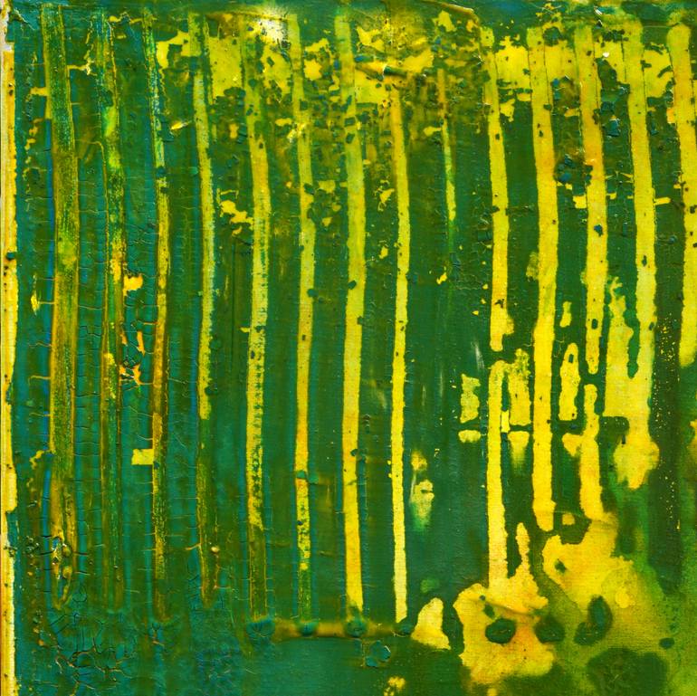 This is abstract watercolor painting on canvas 12x12 in (ca. 30x30cm) done with painting knives and flowing water. The final layer was done in glazing with oil colors. I call it Broken Code.