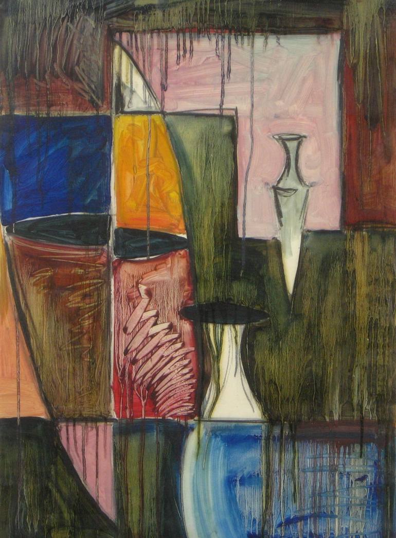 The vessel form in general inspired this painting. The idea of inside and outside ( positive / negative spaces ) . The shapes that are formed by these opposing forces on a 2D plain. I have always been fascinated with vessel forms and the spaces that they occupy and create.