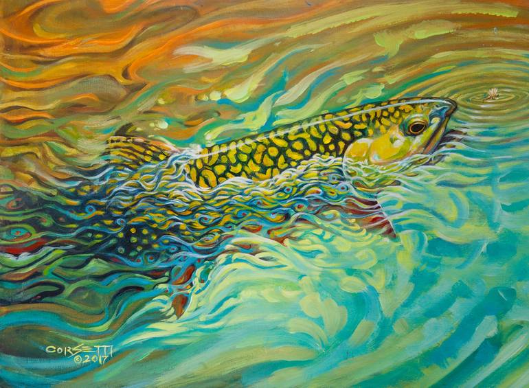 A flash of color, the way it hits, more of a feeling than actual seeing, in that split second just before a fish takes your fly you know what it is. This is why I hate having and a painting hanging around, they never really are finished - just abandoned. I have sold several prints of the original o...