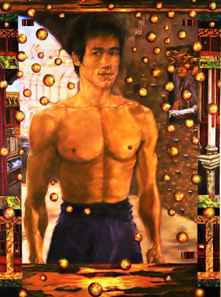 this painting is inspired by the legendary Bruce Lee. A symbol of wisdom, power and grace, a shape shifting dragon, an omnipotent force. A recognizable flow of beauty and the essence of human perception of talent