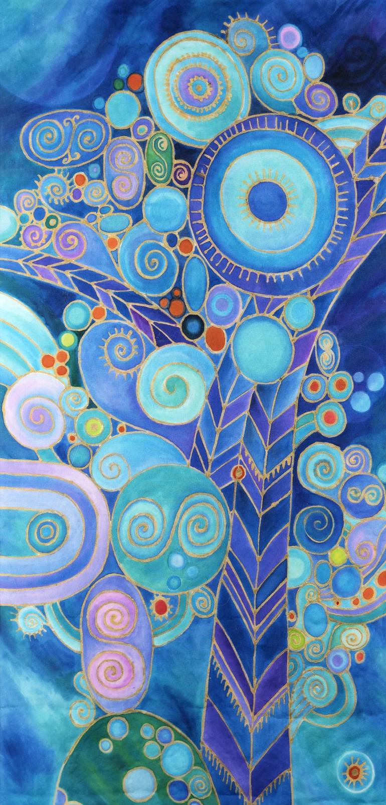 This work belongs to a series of paintings on silk. Made with aniline inks. This work is based on the movement of bubbles. The work is framed and the frame measures 70 x 50 x 2cm. Without the frame the work measures 55 x 26.5 cm