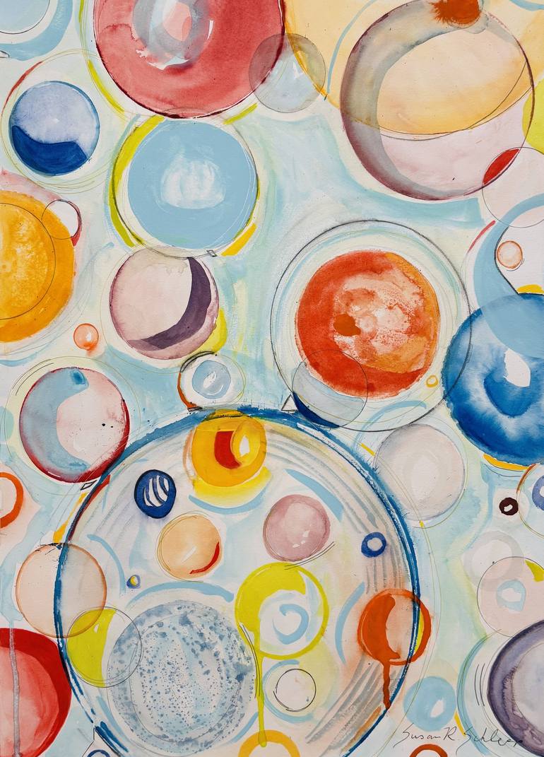 Background: Susan R. Schlepp is a dynamic expressionist artist from Sammamish, WA, born and raised in Pittsburgh, PA. She has a passion for painting and printmaking, inspired from the natural world and her inner landscape. Her art flows instinctively with each piece having a unique story to tell, uplifting the viewer and enhancing the space it resides in. Motivation: Susan's motivation is the sheer joy & freedom found in artistic expression paired with a heartfelt desire to give back to charitable organizations through donations of art to events. Susan gifts at least 10% of sales to The Nature Conservancy because our natural world deserves to be protected. Healing: In 2013, Susan began pursuing art in response to suffering from Seasonal Affective Disorder (SAD). Playing with color was deeply healing and allowed her to rise above gloomy skies and drizzly days. She discovered that creating art offers a tangible way to express and process a multitude of thoughts and emotions. She now harnesses the full spectrum of color in all its hues, shades, tints and tones to lift the soul and help navigate the ups and downs of life. Endeavors: Spring 2025, Susan will continue her art education at Bellevue College. Winter 2025, she expanded her skillset in Honolulu & San Diego with experimental techniques & formal classes. Spring 2024, she participated in a week-long online workshop to delve deeper into design, value & color. Summer 2023, Susan was invited to Santa Catarina in Puglia, Italy to participate in a special art project where she created & photographed her temporary art installations in the Porto Selvaggio Nature Preserve. While there, she made natural pigment paint from the rock sediment, produced prints from native botanicals and painted daily. Winter 2023, Susan was an artist-in-residence at the Scuola Internazionale di Grafica in Venice, Italy for six weeks where she painted daily and learned many printmaking techniques, all while soaking in the art, architecture & culture of this magnificent "floating" city. Giving Back: Susan has volunteered at Seattle's Union Gospel Mission Art Therapy program for the unsheltered and curated the pop-up art show at the monthly Pioneer Square Art Walk. She has led art classes with youth at the Denny Detention Center and witnessed the power of art to positively transform states of mind. She occasionally teaches workshops and loves to encourage people to unlock their inner artist and reap the many benefits.