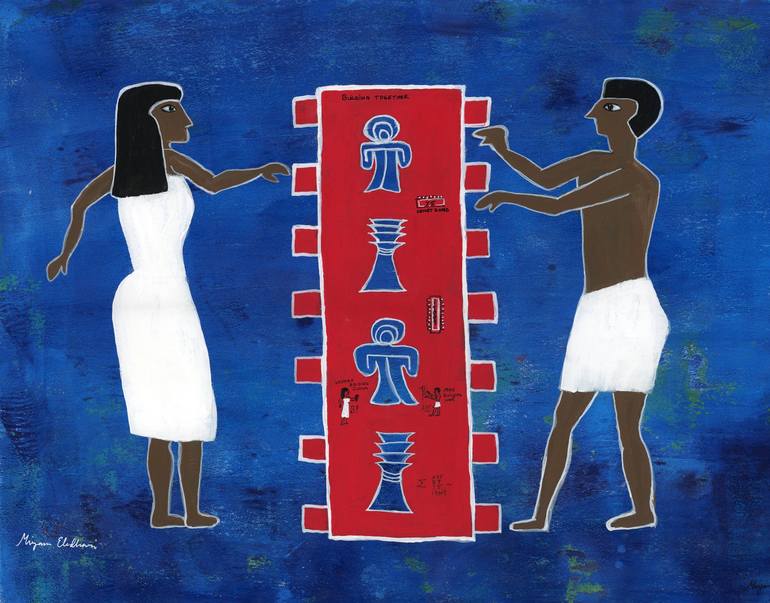 When we build games, we do it together, over borders, and we build on a history older than the the first written words. This painting is based on a number of symbols - Egyptian hieroglyphs, blueprints of microchips, and ancient board games. I have combined them to express that when we bild games,...
