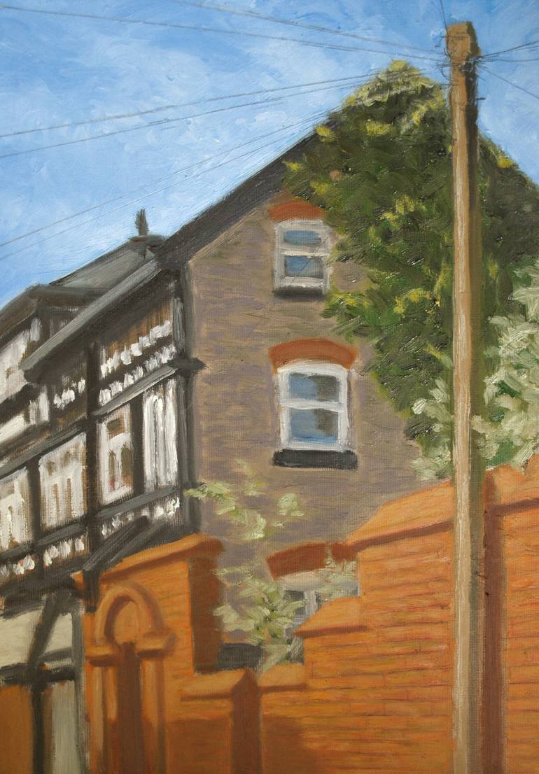 A study of commercial buildings in Didsbury, Manchester. Oil on canvas. Completed mainly on location with some refinement later. Painting this, as is usually the case when working in the street, was quite a sociable experience with several passers-by coming over to take an interest and chat.