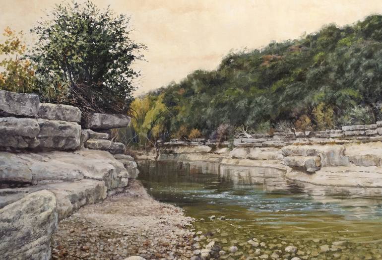 Oil painting of an area of Bull Creek in Austin, Texas. One of several paintings I have made during the past years on this subject. A beautiful natural spot in northwest Austin.