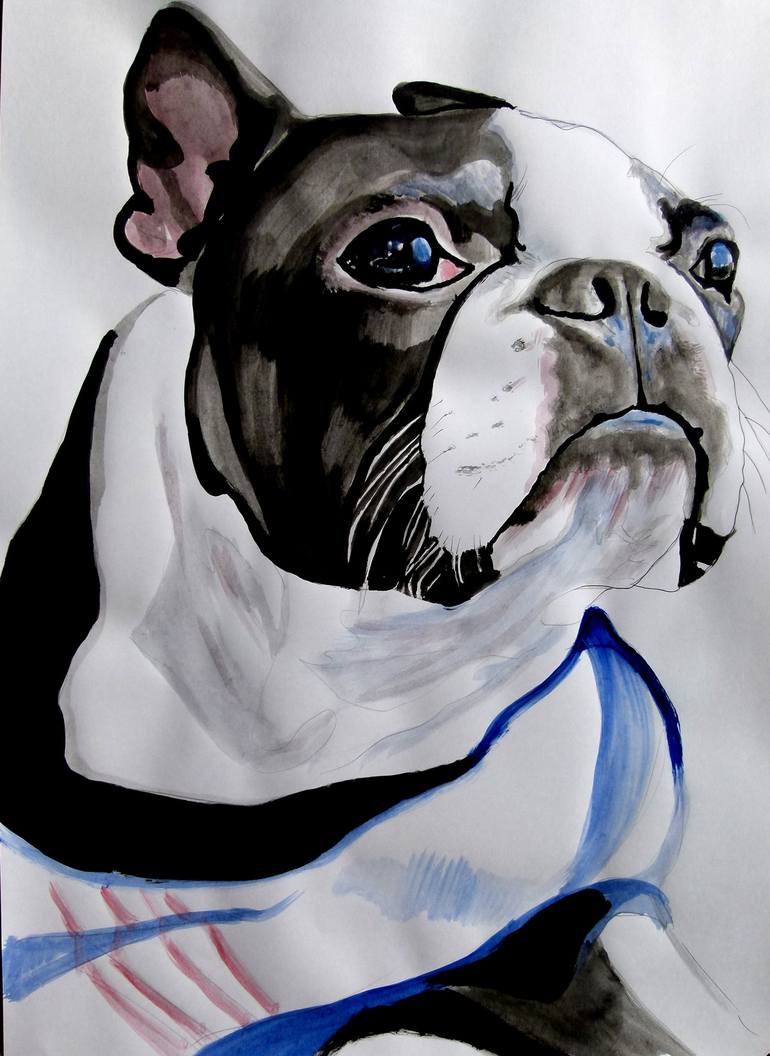 "Bulldog" Acrylic on paper 84x60 cm By Soso Kumsiashvili 2021