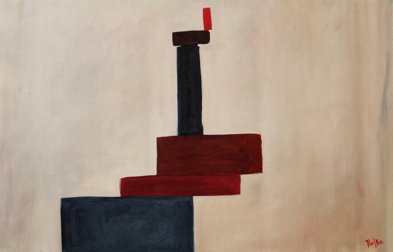 This painting evokes deep emotions with a very deep and light tone on a pale background. The composition is made by combined rectangular elements with contracting dark cool and warm colors. The overall composition gives this painting a sense of depth and weight and the viewers can fell the perceptio...