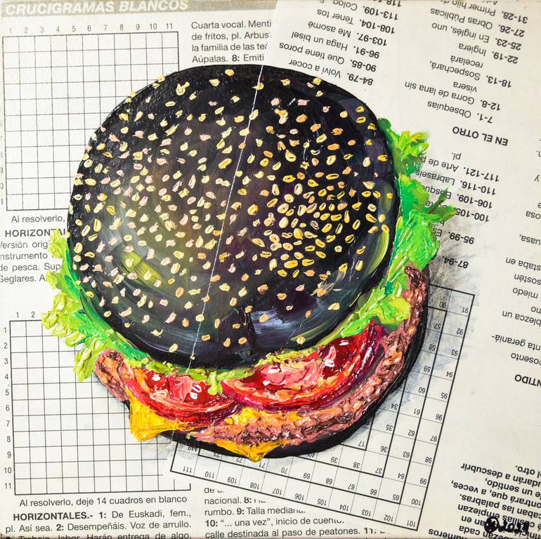 Introducing my stunning Burger Wall Art, a truly unique piece that combines elements of newspaper art, oil painting, and impasto techniques. This food original art captures the essence of American food in a modern and trendy way, perfect for adding a touch of fast food charm to your kitchen or dinin...