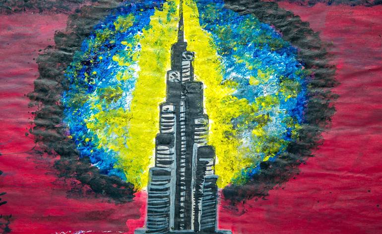 This original art is on paper with acrylic paints. Burj Khalifa is the tallest building in the world. It is among one of the world's most iconic landmarks.