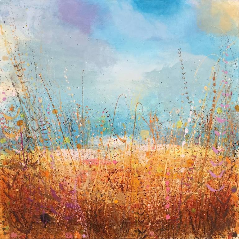 Sandy sells both portfolio work and creates substantial commissions for both private and corporate clients. Her work has also been published as fine art prints. Artists statement: I live and work in Kent, in the South-East of England. I work with landscapes, from which I draw my inspiration. The play of light and shadow, and the in-the-moment experience of absorbing the world around me inform my work. I am also drawn by my memories of a childhood spent outside, the visual impact and pleasure of that still resonates with me. I love colour and texture and in my work am always attempting to use these elements to create a harmonious balance. I enjoy working in an experimental way with different materials, I frequently throw paint at my canvas, and work with the canvas on the floor, dripping paint onto it. The spontaneity that gives me very valuable.