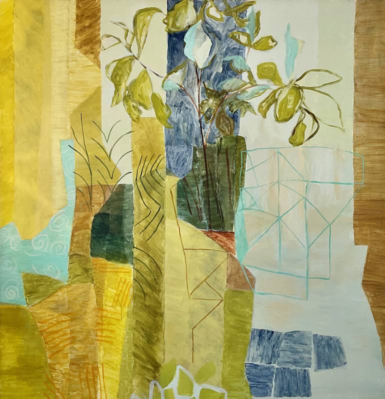 Cutting up design magazines and arranging a study leads to all kinds of ideas. This painting evolved from that process of a slightly off beat plant arrangement.