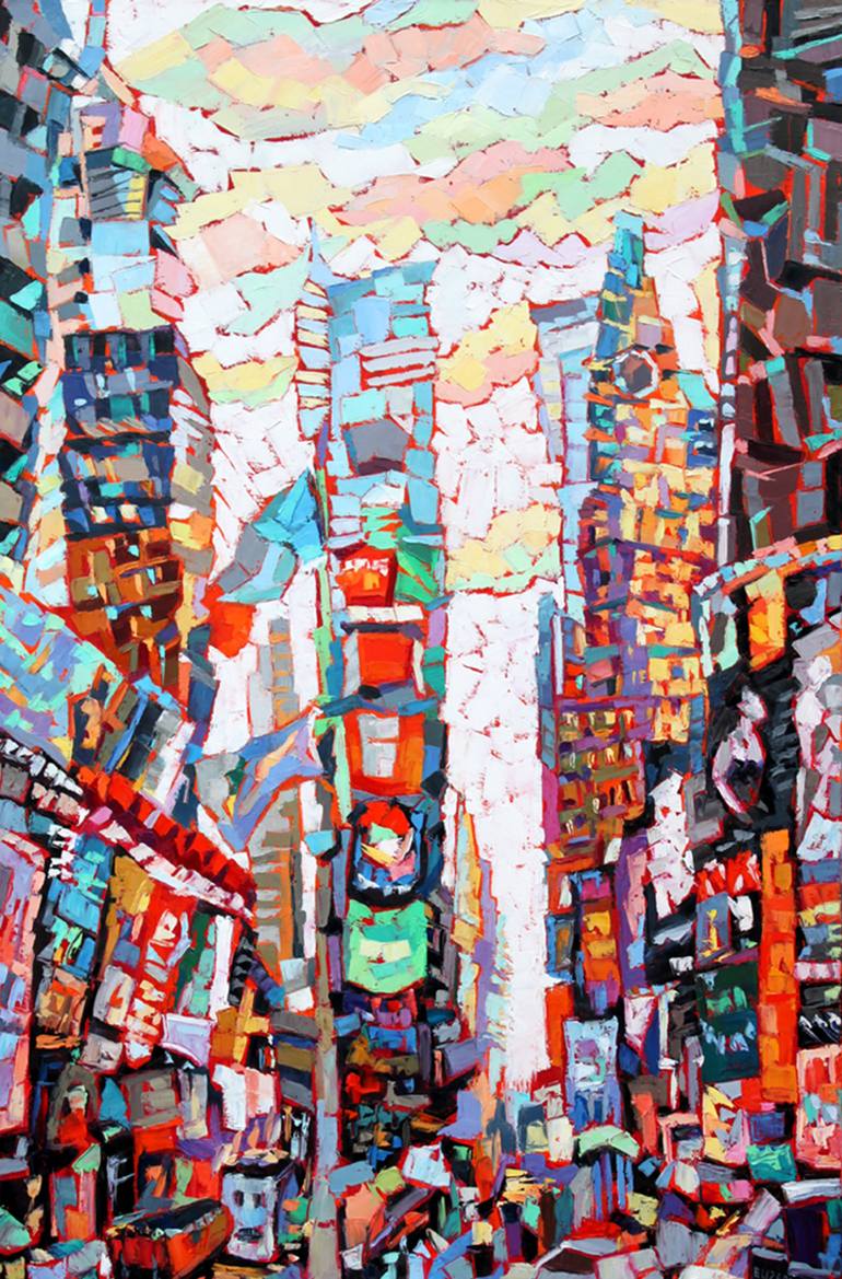 Times Square, oil painting. New York City series is based on a whole new style of palette knife on canvas that I developed following my trip to NYC. The square strokes that I used, the shapeless shapes in their own right, work to convey the enormous structures that dot the New York skyline. I sig...