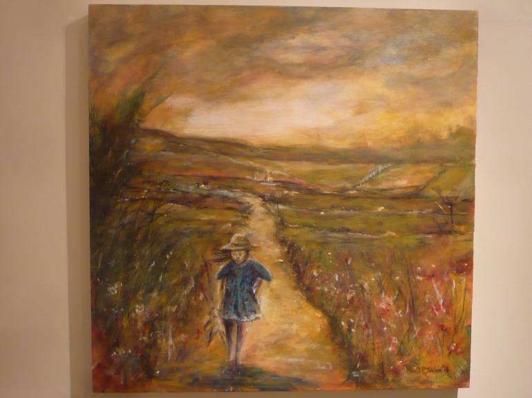 Inspired by a friend walking with her daughter as they tried "Butterfly catching"...they both loved to visit this hill to relax and contemplate. They enjoyed the space, light, views and smell of the flowers..This creation made me feel just the same joy