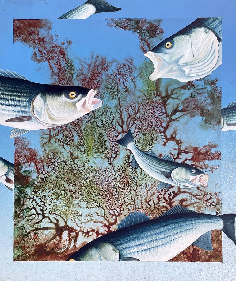 This is from a series of paintings combing both abstraction and realism. I start with an abstract base created using a technique known as decalcomania. This involves putting very wet paint onto a smooth and resistant primer. The paint is then pressed against the surface using a variety of materials,...