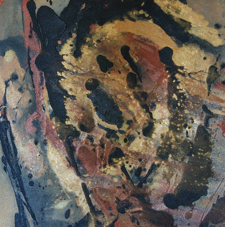 This painting looks great with Acceleration. There are numerous thick layers of paint mixed with sand applied to the canvas. The sides are continuously painted and there is a glossy finish. It is wired like all of them and ready to hang. This is part of my Illuminated series. This metallic seri...