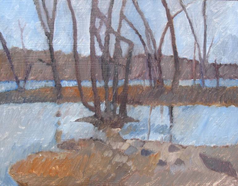 I painted this in situ on the C & O Canal Trail in Maryland without preparatory drawings or photographs. My love of the outdoors inspired me to create this.