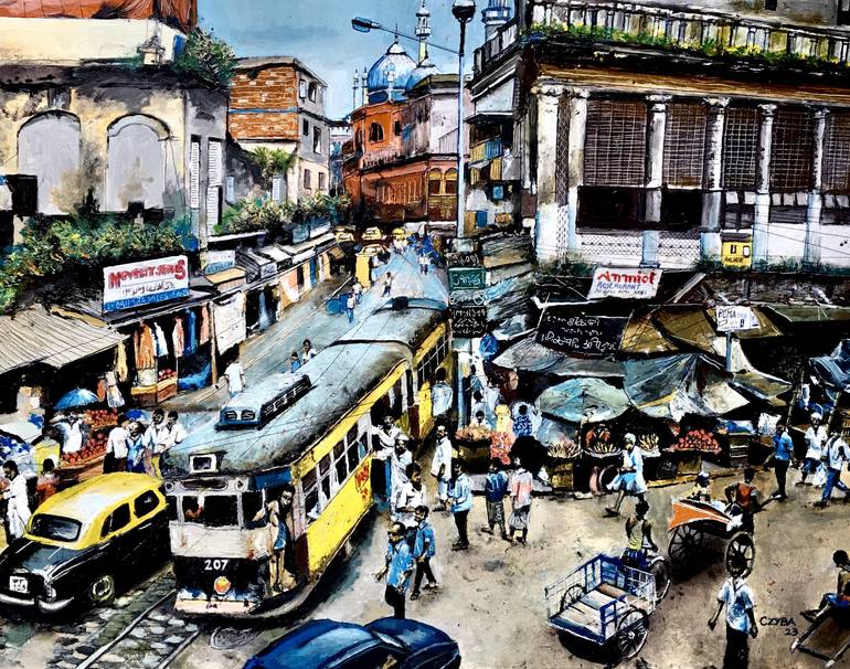 I love to paint cityscapes and urban life all over the world, teeming with crowds and pedestrians. India, like Haiti, is one of my favorite sources for its incredible activity.