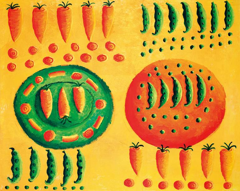 This 'Carrots and Peas' painting is part of a series of fruit and vegetable design based illustrations I created after our third child was born. At the time I was eating lots of fresh fruit and vegetables in order to get back to my pre-pregnancy weight. I just couldn't resist painting the rich contr...
