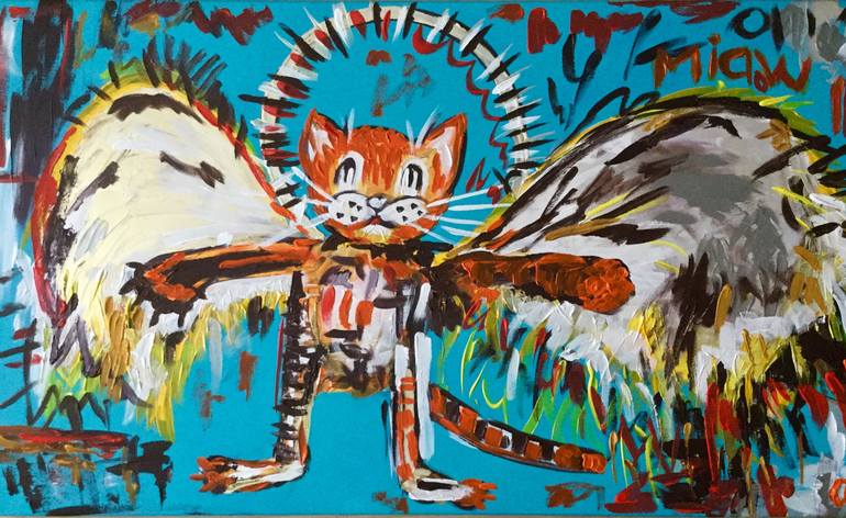 A version of the famous painting “Fallen Angel” by Jean-Michel Basquiat with a ginger cat I have done one of them for cats lovers in acrylic on linen canvas. Ready to hang . Signed on the front I created this painting using fine artist acrylic paints which will not fade when they get exposed to U...