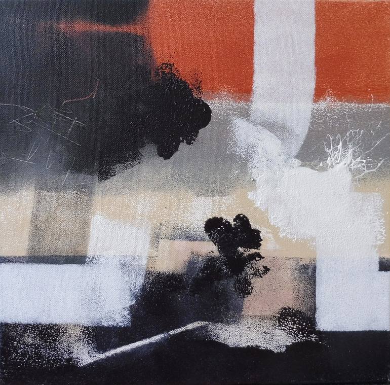 PART OF SERIE "COPPER STYLE". ACRYLIC+SHINING ACRYLIC COPPER PAINT ON CANVAS. ABSTRACT BUT YOU MAY SEE A LANDSCAPE. SMALL AFFORDABLE READY TO HANG PAINTING.SIDES ARE PAINTED.
