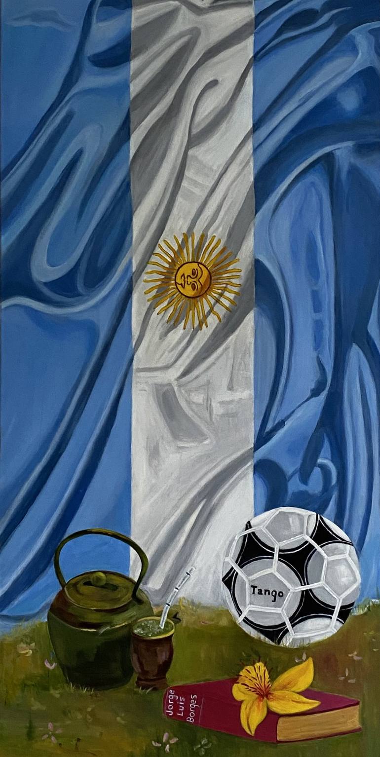 This vibrant acrylic painting on canvas, titled "COSTUMBRES ARGENTINAS," is a figurative representation of Argentinian customs. The artist visually depicts the heart and soul of the Argentinian people in this medium-sized artwork. The skillful application of acrylic paint brings the subject to life,...
