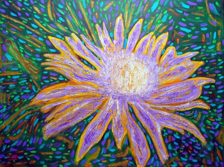 With this painting I attempted to express the primal power of a cactus flower as it blossoms in the heat of the desert summer. The life force is strong for it to blossom, not like a rose which has it easy. The painting is 30 x 40 inches on canvas 36 x 46 inches. I ship rolled in a tube ready for str...