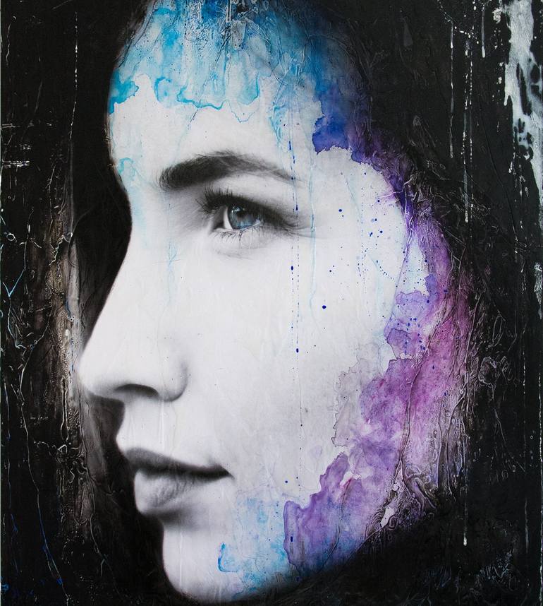 Exclusive XXL portrait artwork, directly from the artist's studio! Mixed media 3D original artwork, created by Rouzbeh Tahmassian. This unique piece contains a lot of structure due to beeswax, damar resin and at least 7 layers of watercolour/acrylics/gouache/oil, which makes the artwork come to lif...
