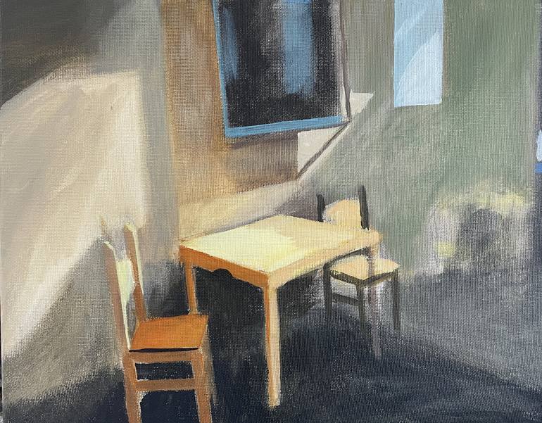 Years ago when we visited Santa Fe we stopped at this charming café and I took some photographs. I was attracted to the play of light and shade and the brilliance of the reflection on the table and chair.