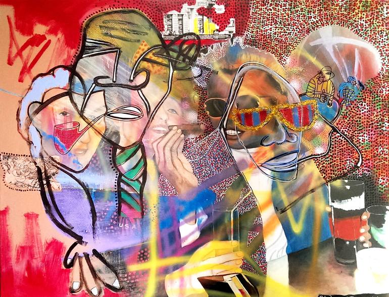 Creation Date: 20-04-2015 - Title: Café Louise - Dimensions: 120cm x 150cm - Media: Painting/Mixed Media - Artistic Style: QBeyondIsm - Artist: Hans Simtanda Caspersen
