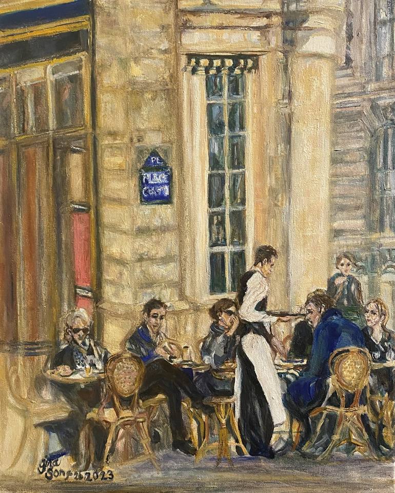 Through her Parisian café paintings, Gina Son captures the quiet poetry of women in moments of light and reflection. A Korean-American artist shaped by life across continents, she reinterprets French Impressionism with a contemporary heart—painting the shared affinities that connect us all. Gina Son is a Korean-American painter who reinterprets the women’s images in French Impressionism through a contemporary, cross-cultural lens. Based in Austin, Texas, she has lived and worked in Paris, Rome, London, Tokyo, Seoul, Santorini, and Honolulu, drawing inspiration from the cafés, streets, and people that define each city’s rhythm and charm. Her paintings often center on Parisian café scenes—capturing the fleeting moments of women amid the interplay of light, architecture, and emotion. Inspired by Impressionist masters such as Renoir, Degas, and Monet, as well as Van Gogh, Chagall, Cassatt, and Sargent, Gina’s work explores femininity, reflection, and the quiet poetry of everyday life. Being artistically inclined since age five, she continued to excel in art and won the National Scholastic Gold Key Award in Hawaii during high school. She later earned a master’s degree in International Relations, reflecting her lifelong fascination with people, culture, and communication. Fluent in four languages, she brings a sense of global understanding and emotional depth to her art—each painting becoming a bridge between cultures. She has held a number of solo art exhibitions in Seoul and participated in group exhibitions in Honolulu. Gina’s work celebrates humanity and connection—the warmth of shared moments, the beauty of solitude, and the resilience of joy. She hopes her art reminds viewers that even after life’s rain, the promise of color and connection always returns.