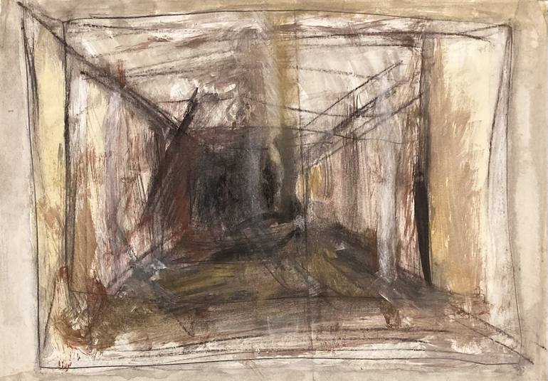 Three white and one dark silhouettes are captured in a square-like tunnel cage. The darkness at the end of the tunnel is like the open space that we might want to explore.The perspective on one hand and the placed silhouette-like figures on the other, lend a feeling of movement in this cage. This is...