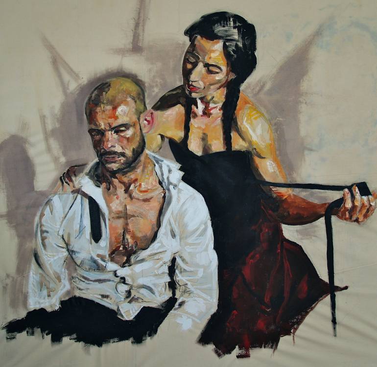 Establishing links between fine arts, litterature and stage performance is one of my main area of work. This painting is inspired by the theater play "Caligula" by french novelist "Albert Camus". The two characters shown on it, are Caius Caligula and his lover Caesonia. The two models for them, ...