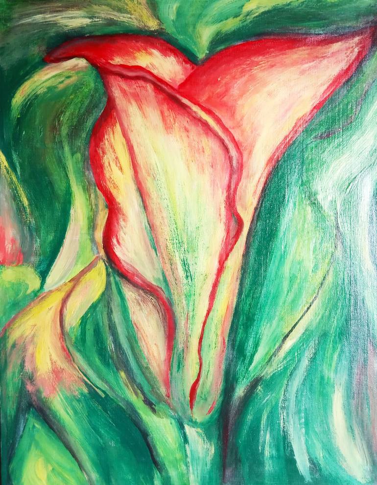 Abstract 0riginal painting "Calla Lily". Made in a unique author's technique, which allows you to show in the picture many details that are interesting for long-term meditative contemplation. The sides of the picture are painted, the varnish contains UV protection. I really love various experiments...