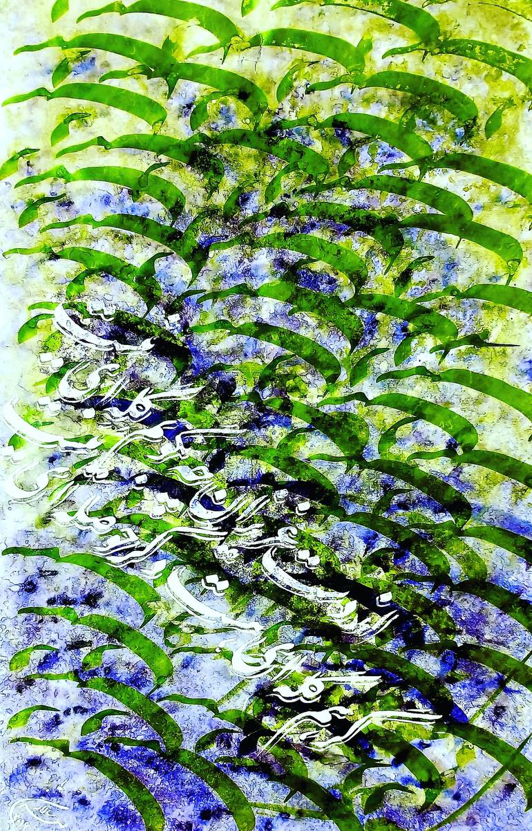 This Persian calligraphy has a multicolor, multilayer and performed with watercolor and ink on paper.