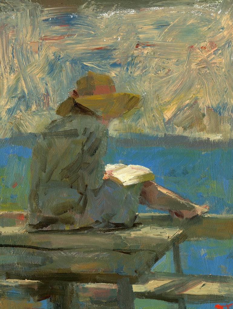 Calm as the Sea is part of a series depicting the figure reading. I use subdued colors and loose brush strokes, as in most of my paintings, in order to create the mood and feel of spontaneity. Art buyers may see a symbolic reference to prominent 20th century American painters like George Bellows, Jo...