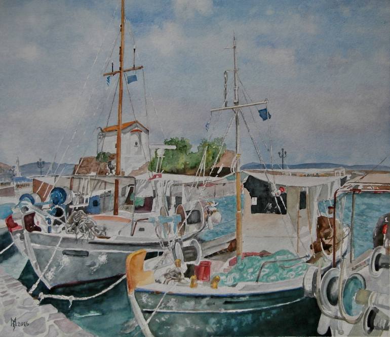 I was inspired with old fishing boats in Greece port. .Original watercolor art on quality watercolor paper With this work, the certificate of authenticity is obtained Thank you for following my works, please contact me for anything you are interested in. It will look great in a frame and large pas...