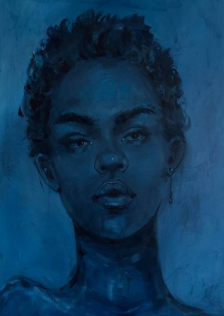 This artwork is an original oil on canvas in blue tones, not a print or giclee. Original artwork abstract portrait Calm. It’s modern art object of collection Emotions by artist Victoria Kagalovska. This is the first painting from an unfinished series about emotions. Symbolizes the gentle sensual nat...