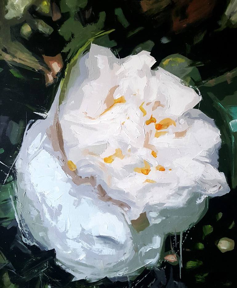 White camellia is a flower growing in an impressionistic style. Intense color and strong foreground with varied technical effects