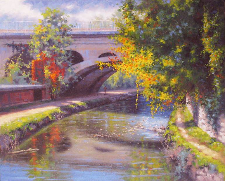Canal Curve shows a glorious fall afternoon along the canal. The real subject is the sunlight, and its influence on colors in both the light and shadow areas. The warm colors in the trees and the sun-drenched path contrast with the cool stone and concrete in the bridge. Under the bridge, a jogger is...