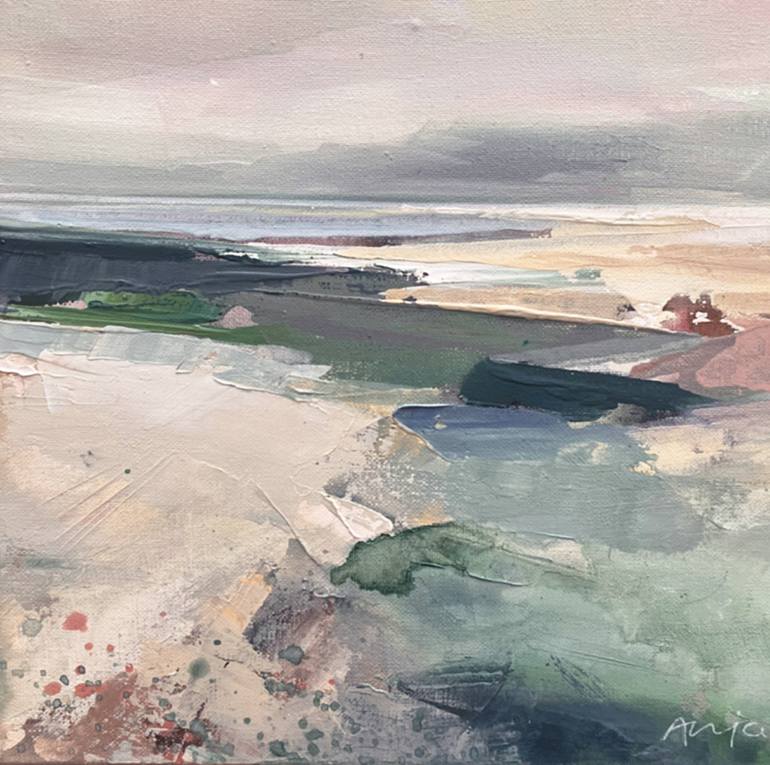 An abstract seascape painted with acrylic on canvas, using a palette knife for texture.