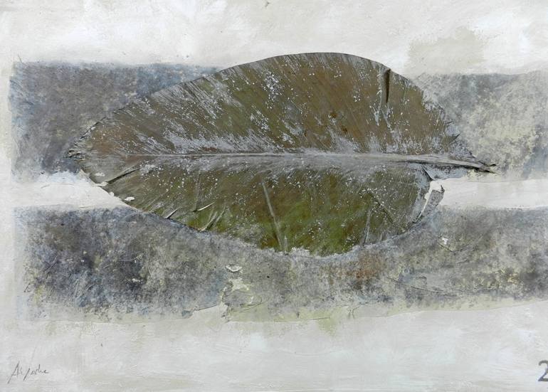 In this composition, the plant, a canna edulis leaf, is finely included in the marble painting. Frozen for eternity, melted into the work, the leaf becomes a monument to its botanical glory.