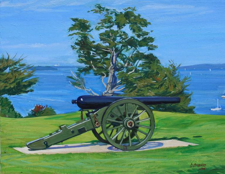 This is an oil painting of one of the iconic canons on the Eastern Prom in Portland, Maine. The canons were installed during the Civil War as a deterrent. They symbolize protection, peace, and security. The Eastern Prom is a beautiful location overlooking Casco Bay. This was painted on location duri...