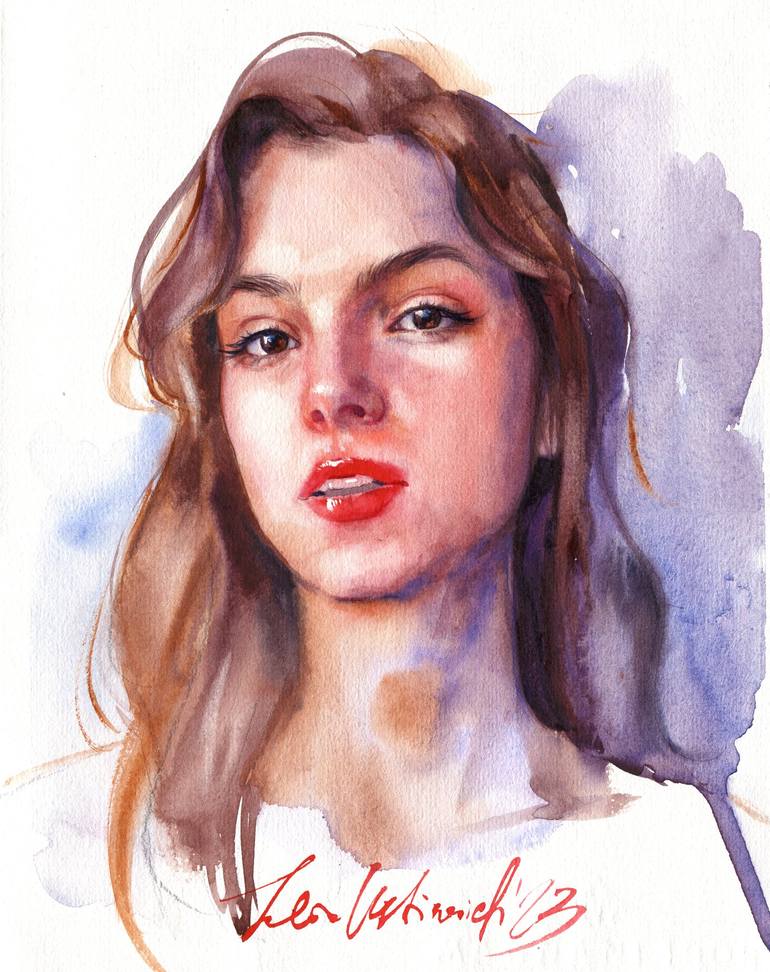 In this watercolor portrait, I had the privilege of capturing a mesmerizing gaze that tells a story of its own. The beautiful black eyes, the allure of red lipstick, and the flowing long hair are a testament to youth and beauty. I'm deeply grateful to Kallie for being my inspiration and bringing h...