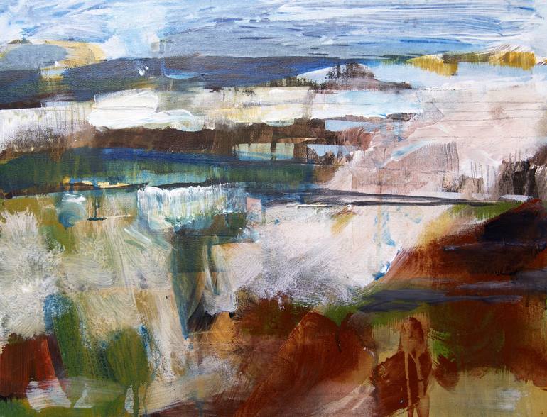 A gestural abstract work responding to the exploration of upland bodies of water storing and converting carbon for us. The painting is on stretched canvas over a wooden stretcher frame. I want to immerse myself in the environment , in nature, and then from there will come the forms, born from my kn...